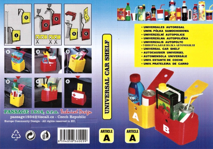 Jedná se o první výrobek na trhu, který pokrývá celou nabídku různých druhů balení občerstvení včetně Tetra-Pack krabic a který je možné umístit v celém vnitřním prostoru každého automobilu. Výrobek je vytvořen jako prostorová skládačka ze 2 dílů a vzájemným sestavením vznikne lehká a tuhá konstrukce, umožňující umístění výrobku do interiéru každého automobilu.